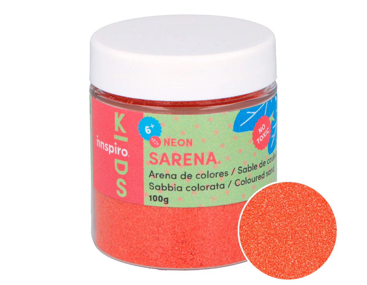 Arenas de cuarzo coloreadas en masa, envases de 100 gr. (46 colores; 5 neón y 1 Flúor).